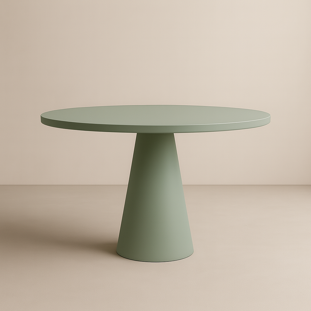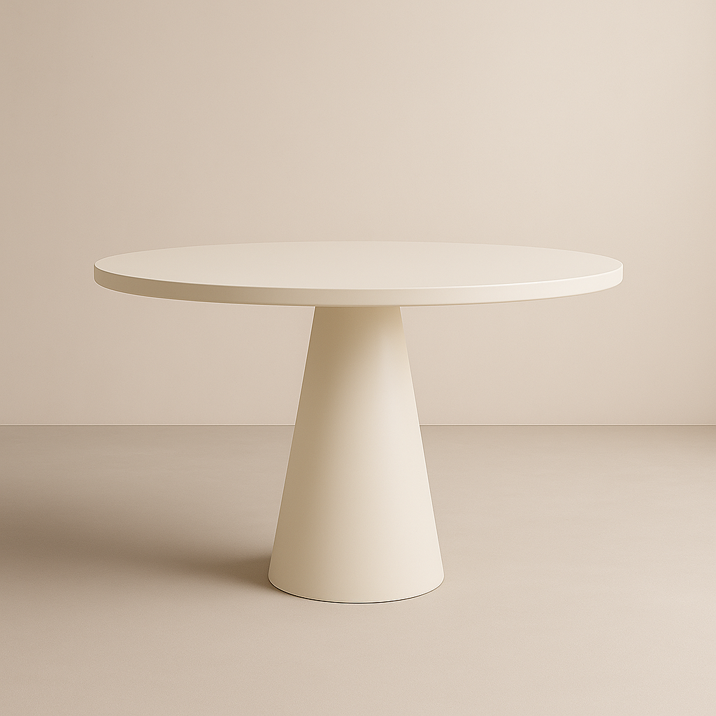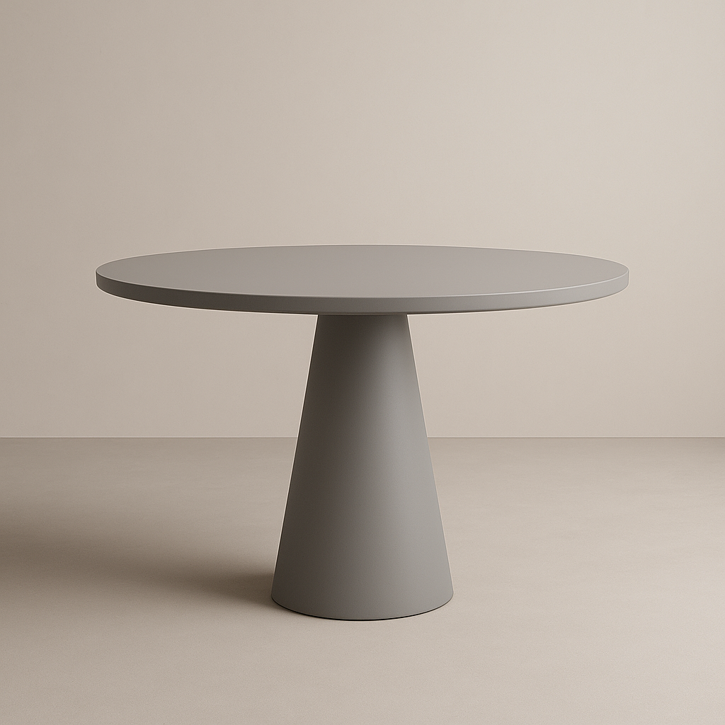 Il tavolo Kona interpreta la forma pura del cerchio con un’eleganza essenziale. La base conica, stabile e scultorea, sostiene il piano rotondo in perfetto equilibrio tra forza e leggerezza. Le superfici laccate opache donano un carattere contemporaneo e sofisticato, ideale per ambienti moderni dove ogni elemento parla di equilibrio e misura.