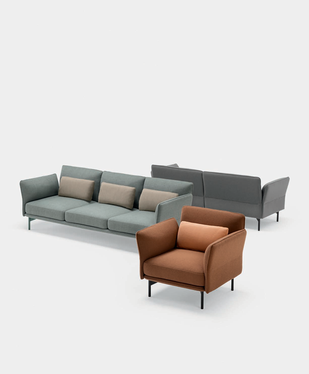 Un equilibrio perfetto tra stile e comfort. Dada Sofà unisce linee morbide e profilo slanciato per un’estetica moderna e accogliente. Le forme pulite e le proporzioni eleganti si adattano con naturalezza a qualsiasi ambiente living, dal più contemporaneo al classico rivisitato. Il bracciolo leggermente inclinato e le sottili gambe in metallo conferiscono leggerezza, mentre l’imbottitura garantisce comfort e durata nel tempo.