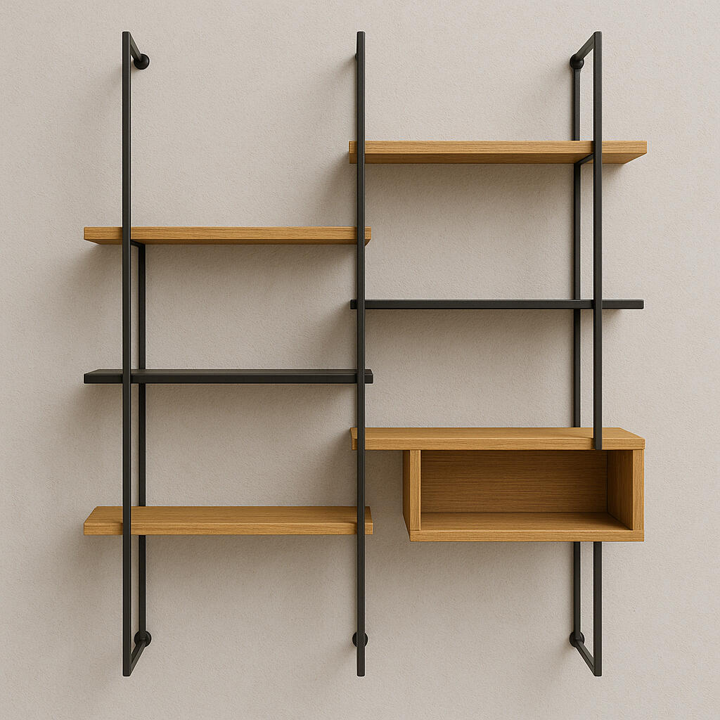 La mensola Urban Wood combina il calore del legno naturale con la precisione della struttura in metallo verniciato nero, creando un equilibrio tra artigianalità e design contemporaneo. Le linee verticali sottili e le mensole asimmetriche conferiscono leggerezza visiva e ritmo geometrico, perfetti per ambienti moderni o industrial chic. Ideale per esporre libri, oggetti decorativi o piante, aggiunge carattere senza appesantire lo spazio.